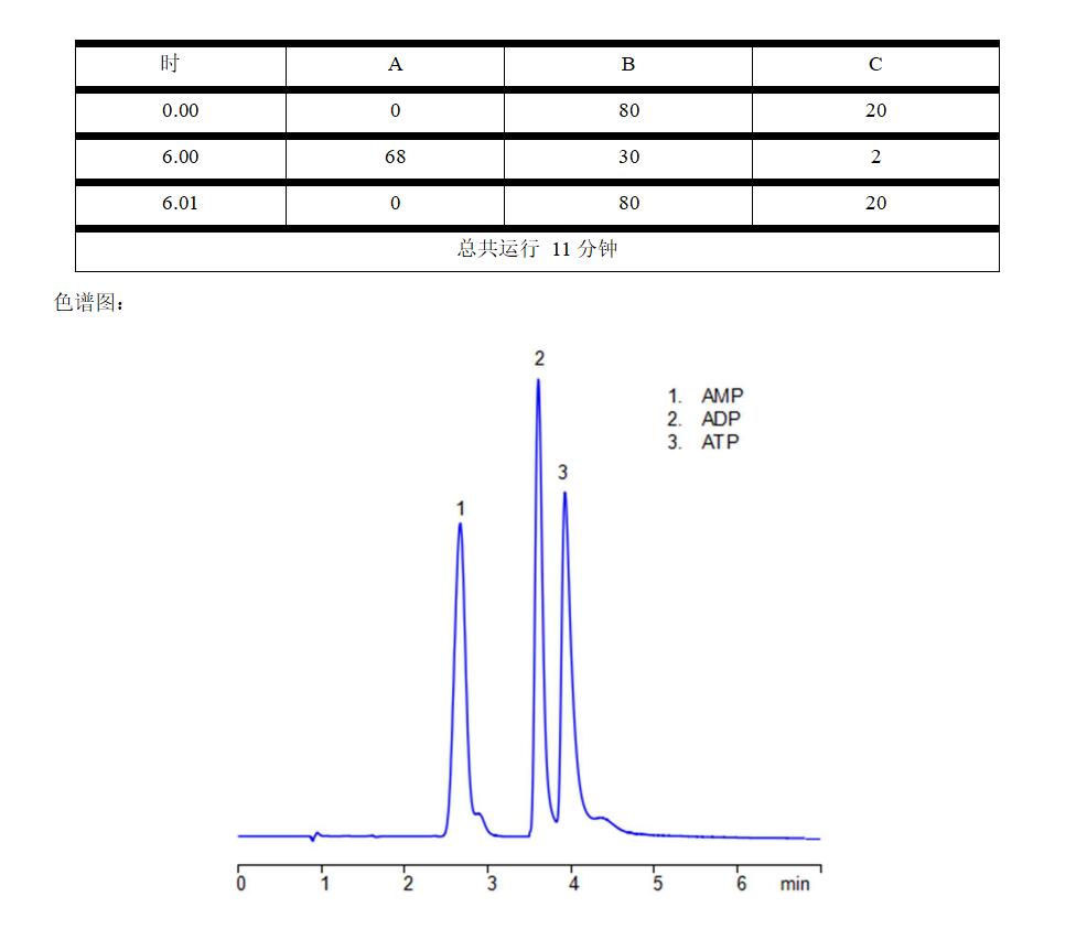Comixsil HCS 與 HAX 關(guān)于 AMP ADP ATP 的 HPLC 分析研究 App ID: FLM-C240010 色譜柱:Comixsil HCS 3u 100*3.0mm (貨號: FMD-HCS3-YONU) 流速:0.6 mL/min 檢測波 :275nm 流動(dòng)相:A:水 B:乙腈 C:200mM 乙酸 (pH5.5)